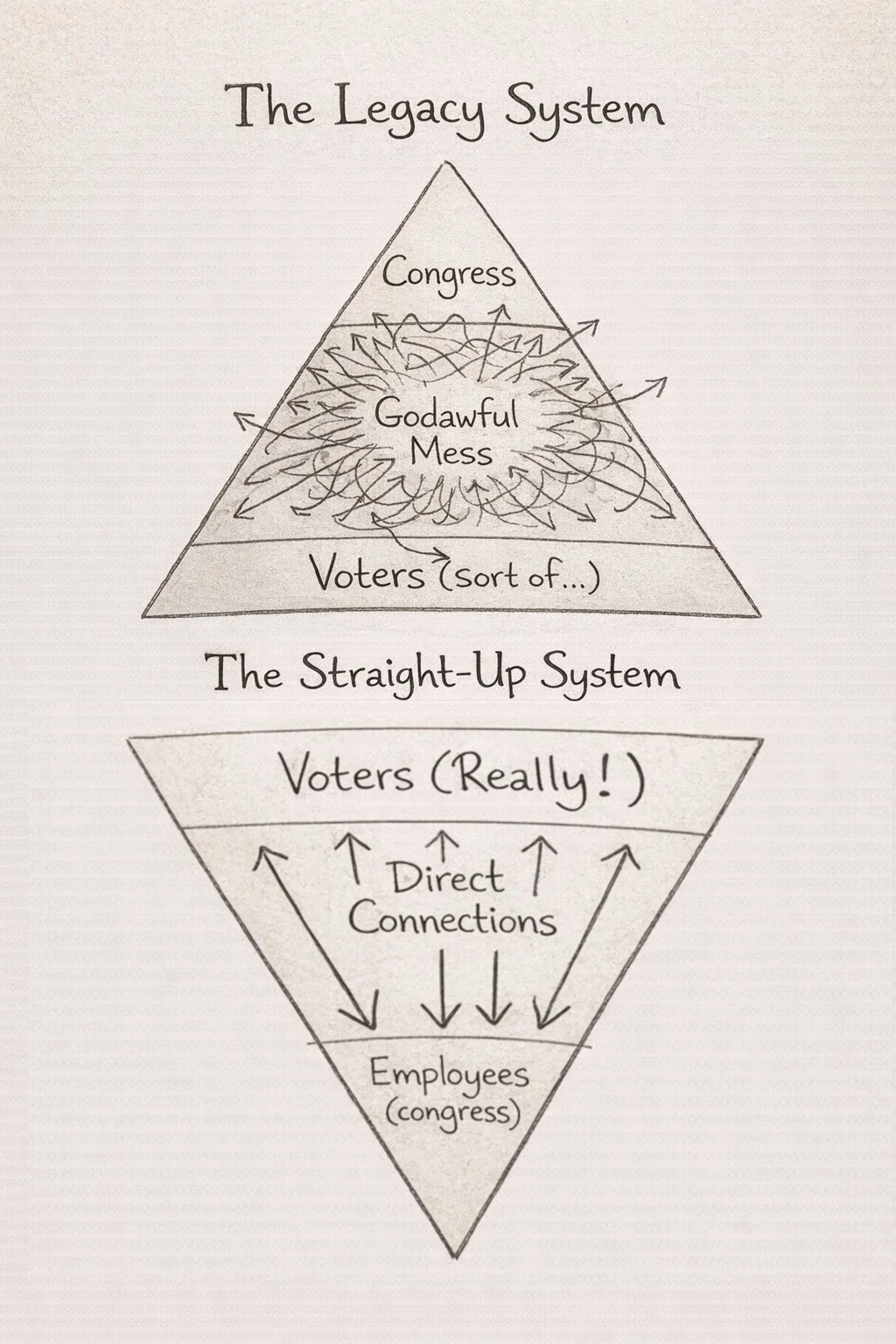 In other words, what’s missing is structure—not control from above, but structure aligned with human limitations and human potential. Structure that emerges from the voters, based on their needs.